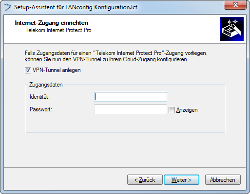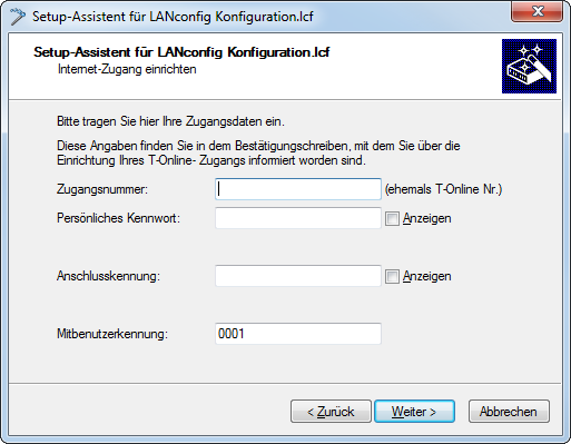 Um Ihre Eingaben zu übernehmen und zum nächsten Dialog zu gelangen, klicken Sie jeweils auf Weiter.