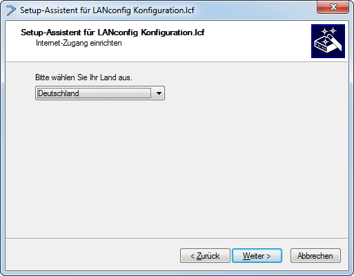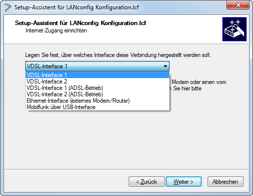 Anmerkung: Abhängig sowohl von den Möglichkeiten Ihres Gerätes als auch den Optionen Ihres Internet-Providers unterscheidet sich der Assistent in den angezeigten Optionen.