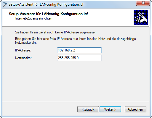 10. Falls Ihr Gerät noch keine IP-Adresse besitzt, tragen Sie eine neue IP-Adresse sowie die entsprechende Netzmaske ein.