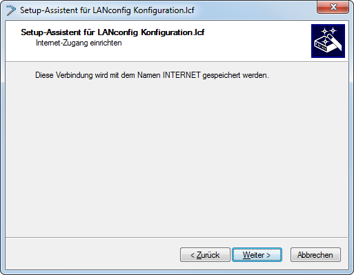 8. Der Name für diese Verbindung ist "INTERNET".