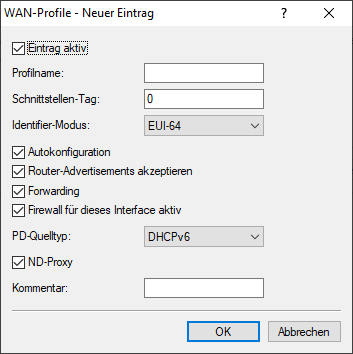- Aktiviert bzw. deaktiviert dieses Profil einer logischen IPv6-WAN-Schnittstelle.