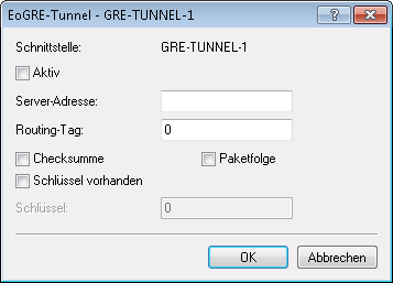 - Adresse des EoGRE-Tunnel-Endpunktes (gültige IPv4- oder IPv6-Adresse oder FQDN).