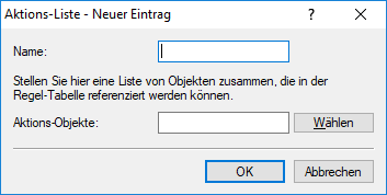 Über die Schaltfläche Aktions-Liste können Sie Aktionen zu Gruppen zusammenfassen. Die Aktionen definieren Sie vorher unter Aktions-Objekte.