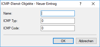 Über die Schaltfläche ICMP-Dienst-Objekte definieren Sie ICMP-Dienste, die die IPv6-Firewall für Filterregeln verwenden kann.