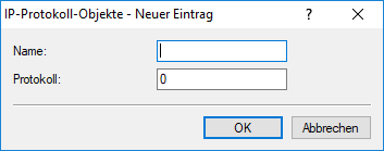 Über die Schaltfläche IP-Protokoll-Objekte definieren Sie Internet-Protokoll-Objekte, die die IPv6-Firewall für Filterregeln verwenden kann.