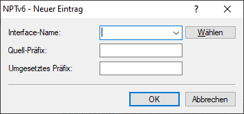 Präfix auf das das Quell-Präfix umgesetzt werden soll. Es kann entweder ein explizites Präfix wie 2001:db8::/32 oder der Platzhalter :: mit entsprechender Präfixlänge, falls der Provider ein dynamisches Präfix vergibt, konfiguriert werden.