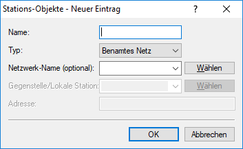 - Die Spalte Netzwerk-Name ist optional und kann einen Netzwerknamen enthalten, in dem sich das Stations-Objekt befindet. Dies kann als Einschränkung auf das lokale Netzwerk verwendet werden.
