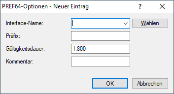 - Gültigkeitsdauer des NAT64-Präfixes in Sekunden. Default: 1800 Sekunden.