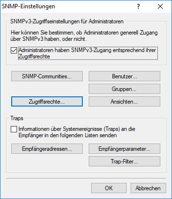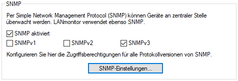 Mit einem Klick auf SNMP-Einstellungen öffnen Sie die Konfigurationeinstellungen.