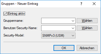 - Wählen Sie hier einen Security-Namen aus, den Sie einer SNMP-Community zugeordnet haben. Auch die Angabe des Namens eines bereits konfigurierten Benutzers ist möglich.