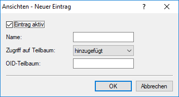 - Bestimmen Sie, ob die nachfolgend angegebenen OID-Teilbäume Bestandteil ("hinzugefügt") oder kein Bestandteil ("entfernt") der Ansicht sind.