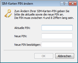 Bei Geräten mit Mobilfunkmodem haben Sie über LANconfig die Möglichkeit, die PIN der SIM-Karte zu ändern. Die Änderung kann einfach vollzogen werden, indem Sie sowohl die alte PIN als auch die neue PIN eingeben. Zur Sicherheit verlangt LANconfig zusätzlich eine Bestätigung der neuen PIN. Alternativ haben Sie auch die Möglichkeit, die Änderung auf der Kommandozeile über die Aktion PIN-Aendern durchzuführen.