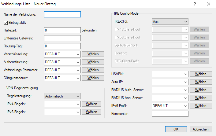 - Bestimmt den RADIUS-Server für das Accounting des VPN-Peers. Den RADIUS-Server für IKEv2 konfigurieren Sie unter unter Erweiterte Einstellungen.