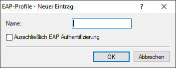 In dieser Tabelle konfigurieren Sie EAP-Profile. Diese wählen Sie bei der Authentifizierung aus, wenn Sie als Methode für die entfernte Authentifizierung EAP auswählen.
