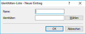 Listet die weiteren entfernten Identitäten auf, die in dieser Gruppe zusammengefasst sind. Diese Identitäten konfigurieren Sie unter Identitäten.