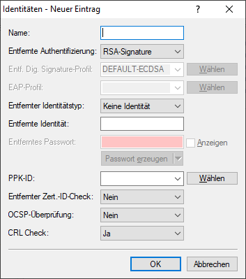 - Keine Identität: Das Gerät akzeptiert jede ID des entfernten Gerätes. Eine Angabe im Feld "Entfernte Identität" ignoriert das Gerät.