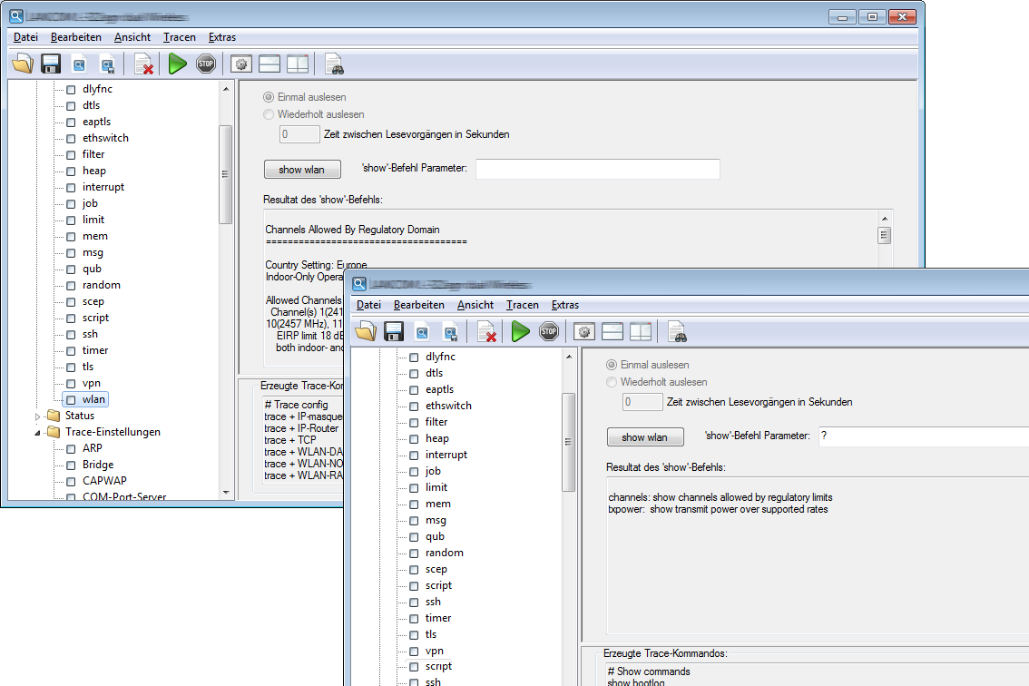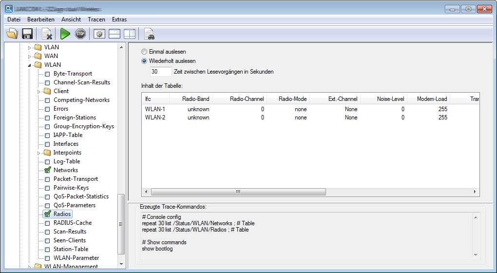 - Klicken Sie im linken Bereich des Trace-Dialogs auf den Namen eines Show-Kommandos (z. B. ) und dann den show-Button (z. B. show wlan), um die aktuelle Ausgabe des Show-Kommandos aufzurufen.