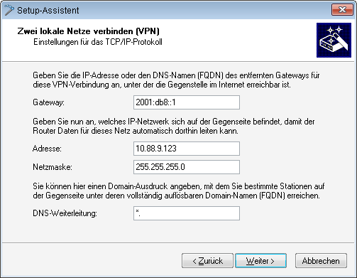 Der Setup-Assistent zur Verbindung zweier lokaler Netze unterstützt Sie bei der