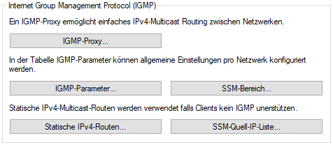 Um IGMP mit LANconfig zu konfigurieren, wechseln Sie in die Ansicht Multicast > IGMP / MLD > Internet Group Management Protocol (IGMP).