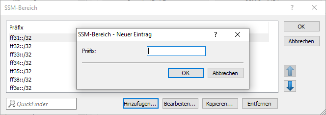 - Definiert den IP-Adressbereich in Präfixschreibweise, der für SSM verwendet wird.