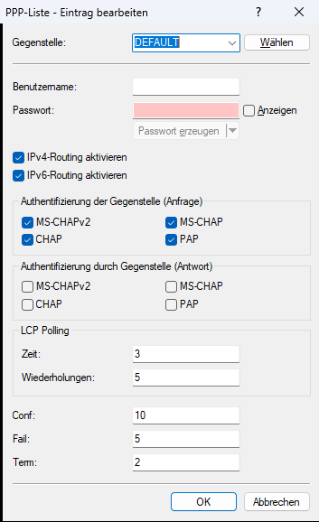 nicht aktiv ab, außer bei einem LCP-Polling-Timeout