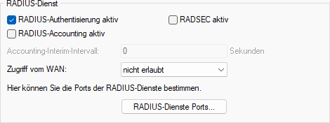 der interne RADIUS-Server verwendet werden soll, kann als IP-Adresse 127.0.0.1 eingetragen