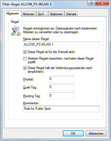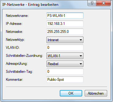 Wie Sie eine Rückroute einrichten, entnehmen Sie bitte der Dokumentation Ihres Internet-Gateways. In LANconfig konfigurieren Sie diese unter IP-Router > Routing > IPv4-Routing-Tabelle. Legen Sie dazu einen neuen Eintrag an und tragen Sie unter IP-Adresse die Netzadresse Ihres Public Spot-Netzes ein sowie unter Router die Adresse, die der Public Spot in Ihrem lokalen Netz besitzt.