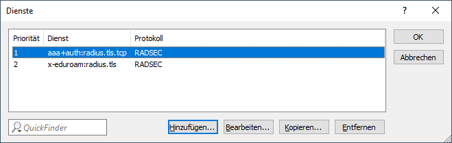priorisierte Services weiter oben stehen. Das Protokoll, das zu so einem Server genutzt werden muss (RADIUS oder RADSEC), wird