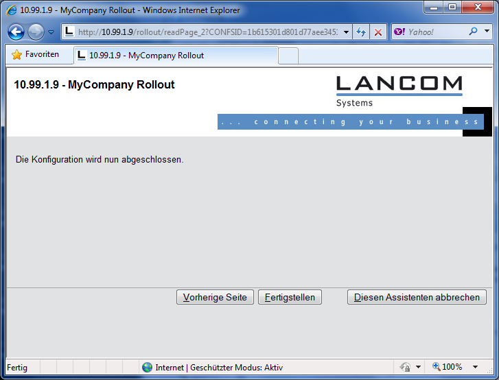 Auf der letzten Seite zeigt der Assistent zunächst einen zusammenfassenden, statischen Text an. Folgende Aktionen führt der Assistent beim Fertigstellen des Assistenten aus: