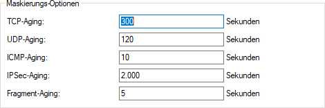 - Geben Sie hier an, nach welcher Zeit der Inaktivität einer UDP-Verbindung der entsprechende Eintrag in der Maskierungs-Tabelle entfernt werden soll.