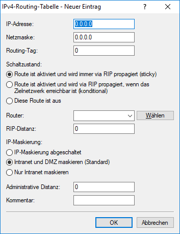 Mit dieser Option in der Routing-Tabelle informieren Sie den Router darüber, welche IP-Adresse er bei der Weitergabe