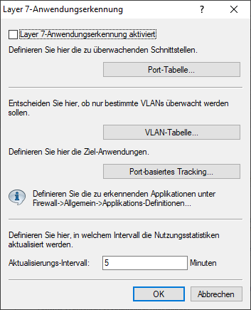 - Legen Sie hier fest, welche Verbindungen mit der Layer-7-Anwendungserkennung überwacht werden sollen. Aktivieren oder