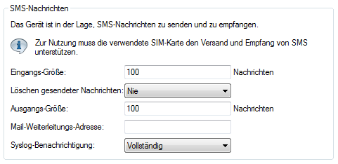 das Gerät eingehende Kurznachrichten im SYSLOG protokolliert.