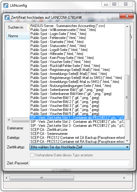 Laden Sie mit LANconfig über das gewünschte SIP-Zertifikat in Ihr Gerät.