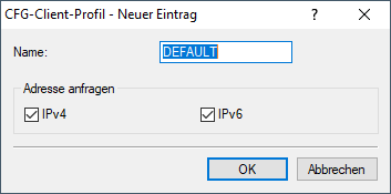 - Bestimmen Sie, ob für dieses Profil Adressen für IPv4 und / oder IPv6 angefragt werden sollen.