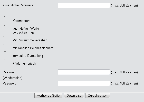 - In der Standardeinstellung sind alle Optionen deaktiviert. Nach einem Klick auf Download startet der Dialog zum Download einer unverschlüsselten Skriptdatei ohne Prüfsumme.