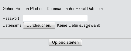 Geben Sie zusätzlich das entsprechende Passwort ein, wenn die Skriptdatei verschlüsselt ist, und klicken Sie auf Upload starten.