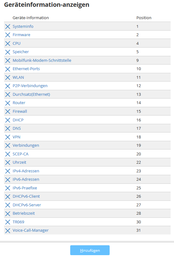 Den Umfang der auf dieser Seite angezeigten Informationen definieren Sie unter . Dabei legen Sie über eine Indexnummer auch die Reihenfolge der Anzeige fest.