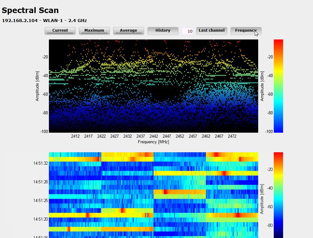 Abbildung 1. Spectral Scan, Frequenz-Anzeige der letzten 10 History-Werte