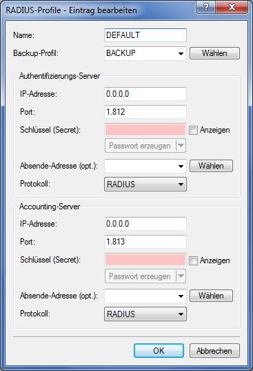 - Wählen Sie aus der Liste der RADIUS-Server-Profile ein Profil als Backup-Server.