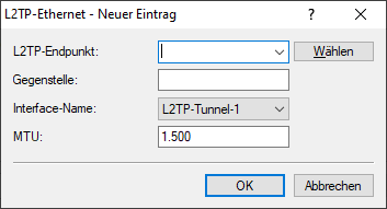 Diese Einstellung passt die MTU eines L2TP-Ethernet-Tunnels auf den angegebenen Wert an, z. B. bei Verbindung des Tunnels über Netzwerke mit kleinerer MTU hinweg. Mögliche Werte: 68-1500