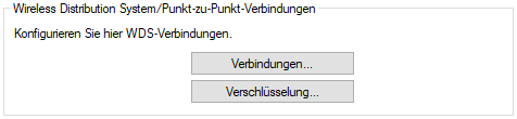 Im Rahmen der WLAN-Konfiguration können Sie festlegen, dass bestimmte SSIDs über WDS-Verbindungen übertragen werden. Dies erfolgt unter im Auswahlfeld WDS-Verbindung.