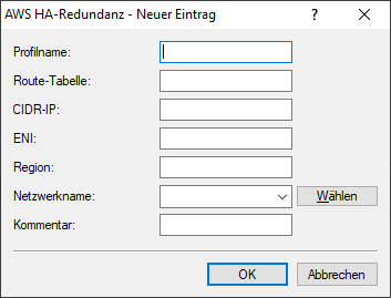 - Name der Routing-Tabelle die in AWS geändert werden soll, z. B. "rtb-099605ce6cb4ac319". Diesen Wert erhalten Sie aus der AWS-Management-Oberfläche.