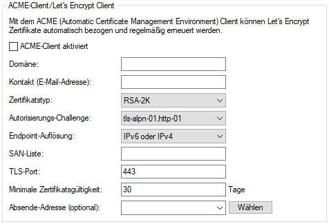 - TLS-Port unter dem von außen die ACME-Challenge erreichbar sein soll, z. B. 443.