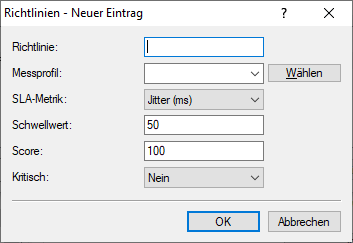 Wichtig: Das Feld muss genau dann leer sein, wenn als SLA-Metrik "Last(%)" ausgewählt wird. In allen anderen Fällen muss ein Messprofil angegeben werden.