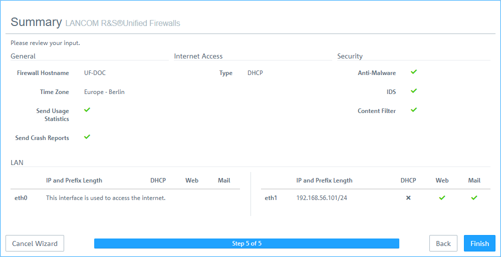 - The password for the user admin – you need this password to login to the LANCOM R&S®Unified Firewall web client.