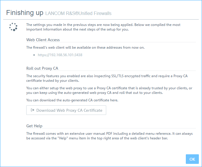 - The password for the user admin – you need this password to login to the LANCOM R&S®Unified Firewall web client.