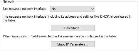 Here you configure the IP and network settings that apply when you use static IP addresses.