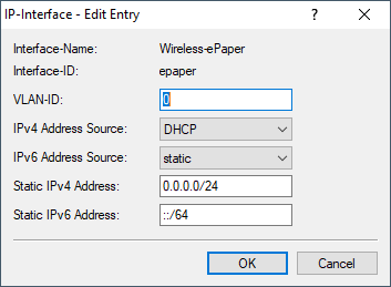 - The interface is always "Wireless-ePaper". This is referred to by the other settings made here.