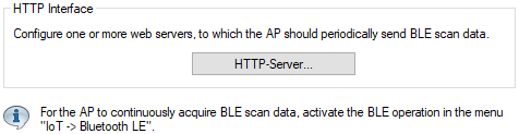 Using the HTTP interface, access points can send LBS data directly to a freely configurable HTTP endpoint. The data is sent in JSON format, which ensures easy processing at the receiving end.